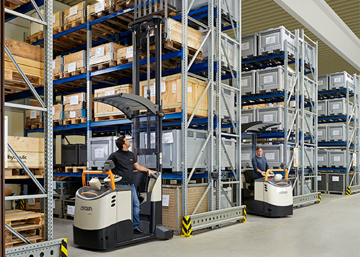Инженеры компании Crown сумели создать складскую технику, которая по своей манёвренности, точности системы управления и классу обзорности является лидером на рынке. Благодаря небольшой высоте посадки оператор может легко заходить на площадку комплектовщика и так же легко с неё сходить.